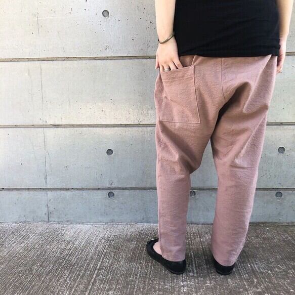 360度どこから見てもサルエルパンツ独特の立体感を楽しめる、