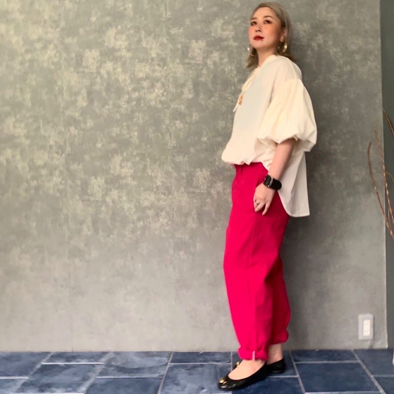 「洗練もリラクシングも、どちらも叶う。美シルエットシェフパンツ。」ウエストゴム ピンク リネン 秋 冬