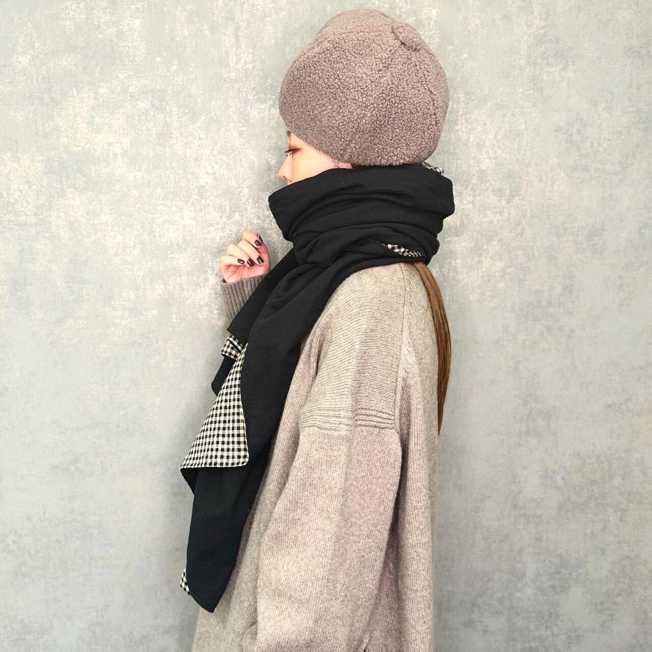 もふもふ、あったかブークレニットのベレー帽♪
